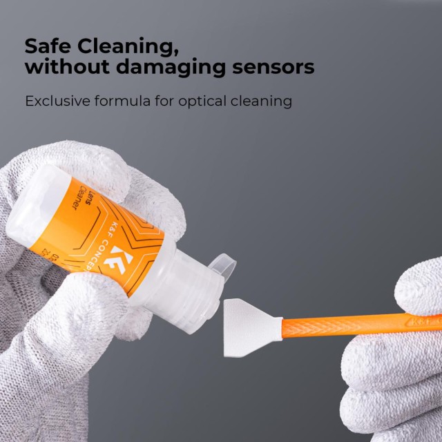 * Konštrukcia čistiacich tyčiniek s dvojitým koncom je prispôsobená veľkosti snímača APS-C Frame, pričom predný koniec je mäkký a odolný voči poškriabaniu, aby sa postaral o snímač.