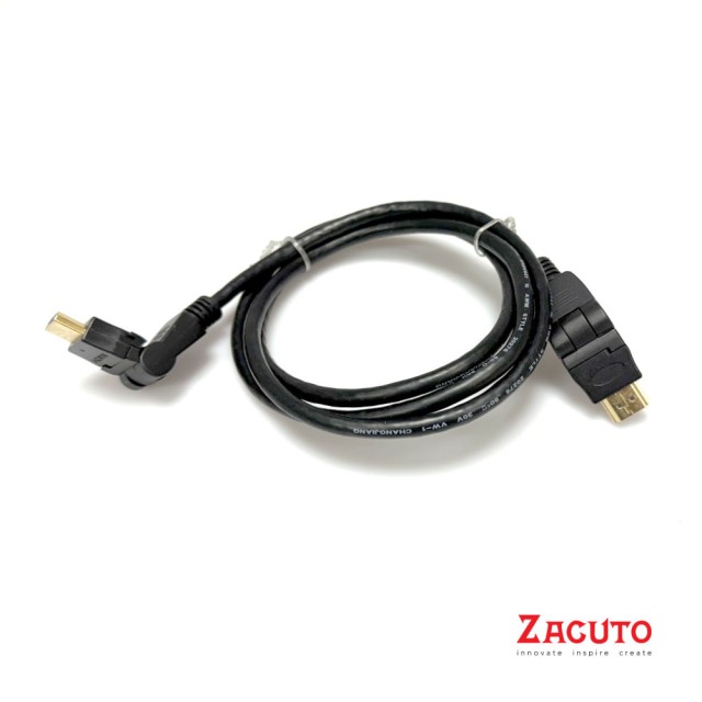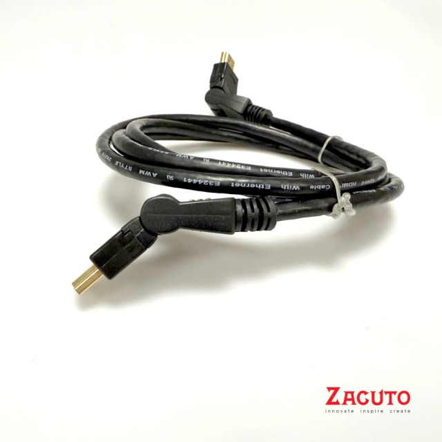 Tento kábel má dve štandardné vysokovýkonné otočné hlavy kábla HDMI. Možno ho inštalovať v pravom uhle vo všetkých smeroch, aby sa zabránilo deformácii kábla. Tento kábel môžete používať s akýmkoľvek fotoaparátom, ktorý má štandardný výstup HDMI. je to ideálny kábel pre majiteľov EVF Zacuto s fotoaparátmi, ako sú Sony F3, Panasonic AF100 / 104, Sony FS100, Nikon D300 a ďalšie fotoaparáty, ktoré majú výstup HDMI štandardnej veľkosti. Tým sa zároveň zabezpečí správna veľkosť vložky medzi 9,5 mm a 10 mm pre najlepší prenos obrazu.