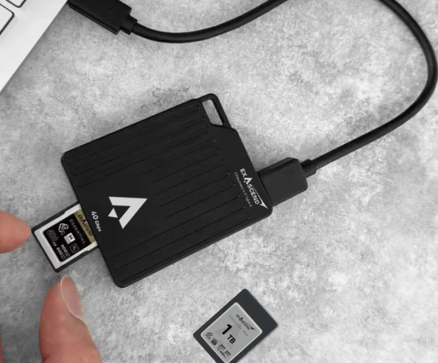 Čítačka kariet Exascend EXCRCFA4 CFexpress Type A Single-Slot Card Reader ponúka rýchlosť USB4 až 40 Gbps pre karty CFexpress 4.0/2.0 Type A, hliníkové odvod tepla, prenosnosť pomocou šnúrky, magnetické upevnenie a kompaktný dizajn s rozmermi 71,6 x 58 x 12,6 mm a hmotnosťou 78 g.