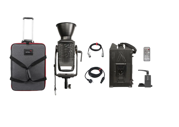 Zakrivený dizajn vidlice poskytuje široký rozsah naklonenia aj s pripojenými veľkými modifikátormi, zatiaľ čo plynulé stmievanie od 0 do 100 % v 1 % krokoch umožňuje presné nastavenie intenzity bez zmeny farby. Sada obsahuje polstrovaný prepravný kufrík na kolieskach s teleskopickou rukoväťou, ktorý váži 16,71 kg, čo ho robí ideálnym pre štúdiové a terénne produkcie.