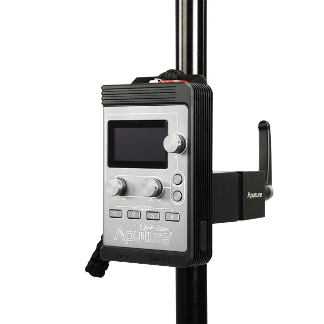 Na rozdiel od iných svietidiel používa Nova P300c vysúvateľnú ručnú riadiacu skrinku, ktorá sa k svetlu pripája pomocou 5-pinového kábla XLR. S oboma káblami, kratším 0,6 m a dlhším 3 m, možno ovládací box úhľadne umiestniť na zadnú stranu panela na rýchle kompaktné nastavenie alebo ho pripevniť k držiaku stojana (Lighting Clamp), keď je svetlo umiestnené mimo dosahu. Ovládací box je vybavený displejom OLED a tromi ovládacími gombíkmi, ktoré umožňujú používateľom plynulo prechádzať ponukami a nastavovať parametre osvetlenia. Ovládací box má aj štyri tlačidlá predvolieb na rýchle uloženie a načítanie parametrov svetla z ľubovoľného režimu.
