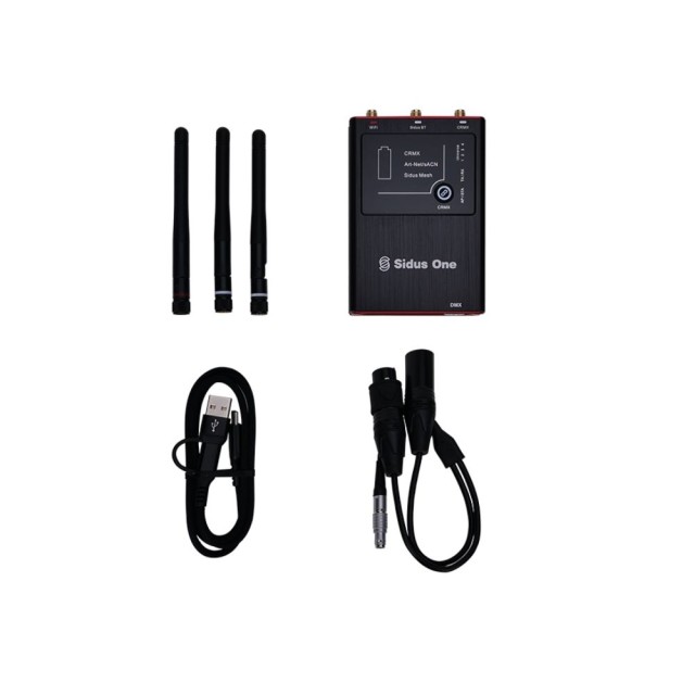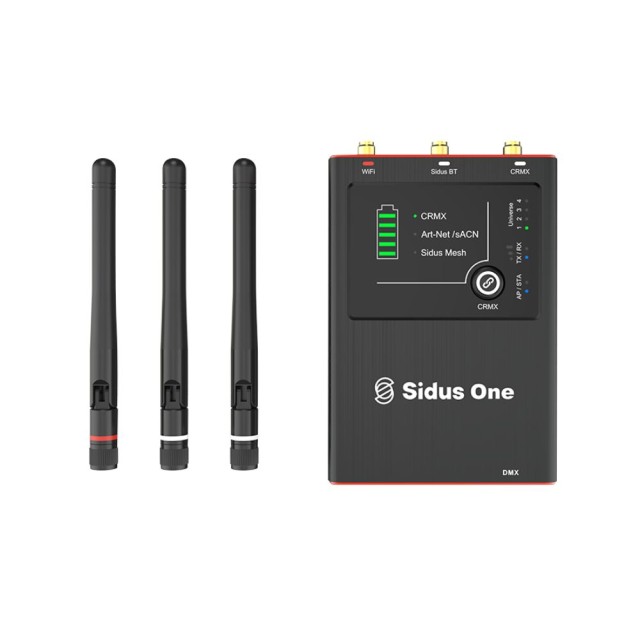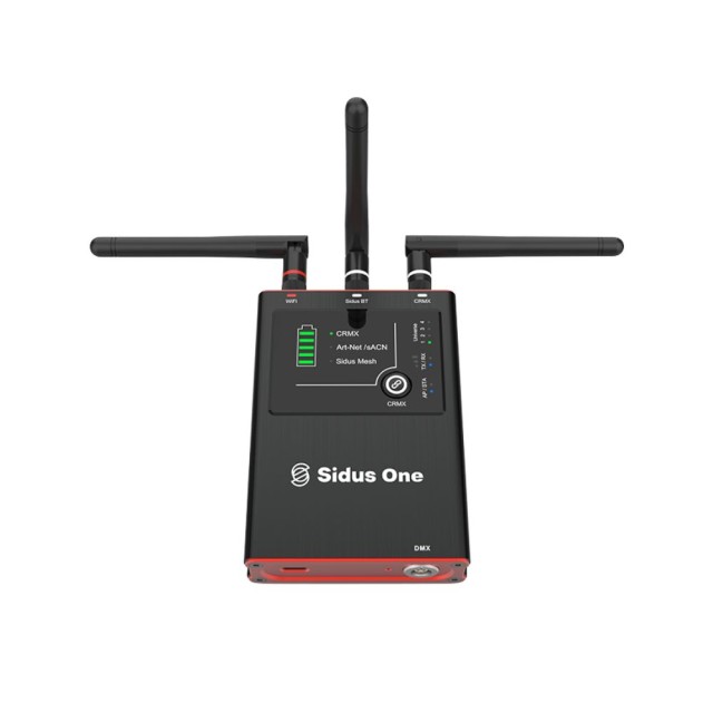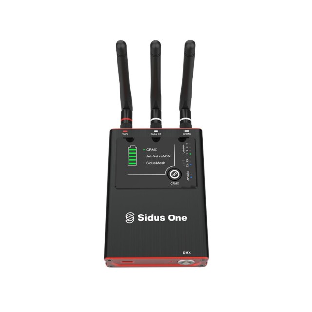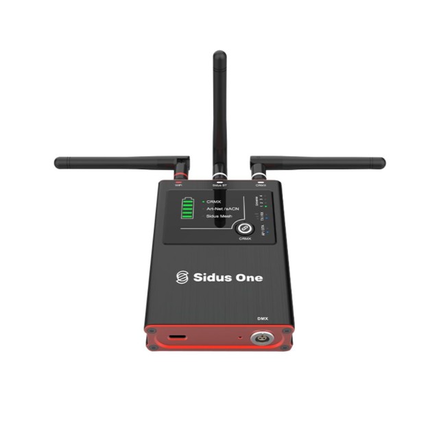 DMX, CRMX, sACN, Art-Net, Bluetooth Mesh - všetky potrebné možnosti pripojenia v jednej malej nabíjateľnej krabičke. Sidus One sa pripája k akejkoľvek aplikácii na osvetlenie a je optimalizovaný pre Sidus Link Pro. Sidus One vysiela DMX a CRMX a môže prijímať DMX, CRMX, Art-Net a sACN. Sidus One sa dá alternatívne použiť ako výkonný hlavný uzol Sidus Bluetooth Mesh v Sidus Link.