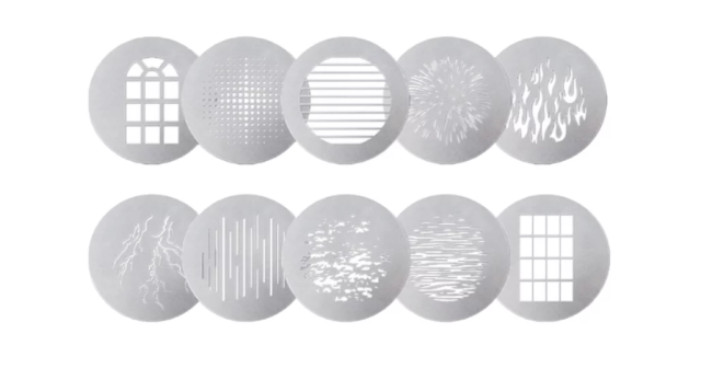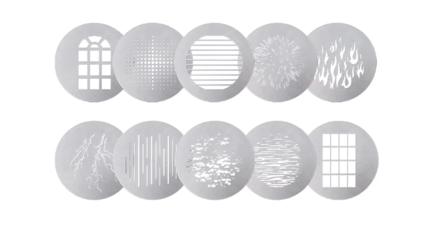 Súprava Aputure Spotlight Max 10-Piece Gobo Kit (veľkosť A) obsahuje desať kreatívnych gobo, ktoré sú navrhnuté tak, aby premietali dynamické vzory a obrazy a vylepšovali scény vizuálnou hĺbkou a textúrou.