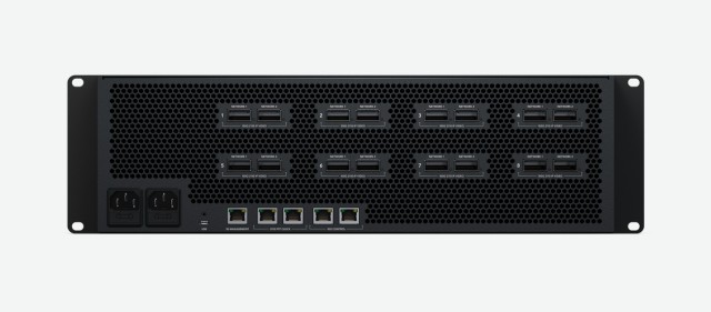 Masívny model 4 M/E Plus má 64 vstupov SMPTE-2022-7 s konverziou štandardov pomocou 8 sád duálne redundantných 100G Ethernet pripojení. Získate tiež 48 výstupov SMPTE-2022-7, 16 ATEM Advanced Keys, 4 multi-view a 2 SuperSource, čo spolu predstavuje 12 DVE.