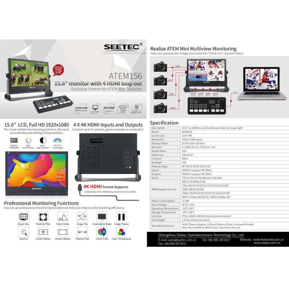 Viacnásobný monitor s priechodným vstupom/výstupom HDMI vhodný pre režijné zariadenia HDMI, ako je napríklad ATEM Mini. Funkcia Quad View na zobrazenie všetkých štyroch vstupov!