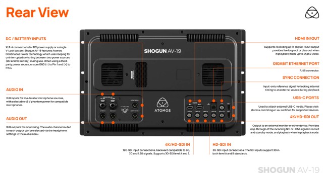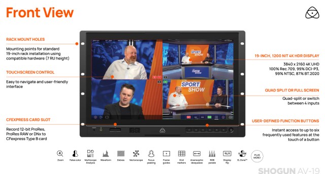 ATOMOS Shogun AV-19 je výkonný19-palcový 4K HDR DCI-P3 monitor-rekordér-prepínač určený pre profesionálnu živú produkciu, vysielanie a prostredia video village.