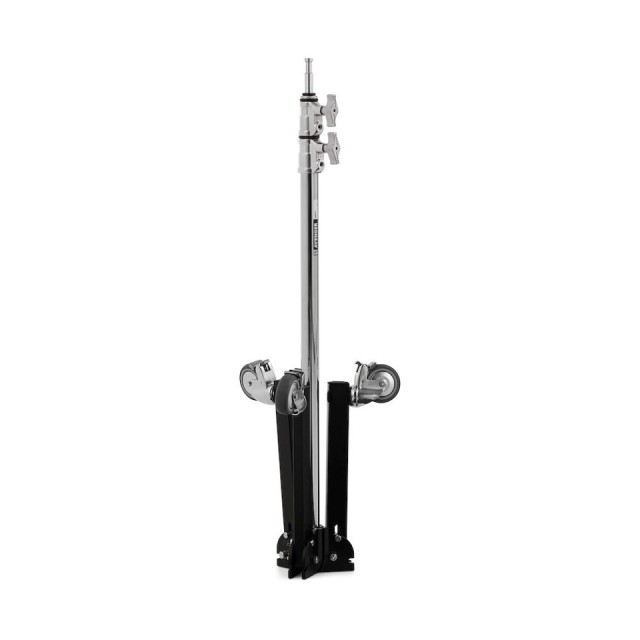 Maximálna výška je 170 cm/66,9 palca a unesie až 12 kg/26,5 kg. Tento stojan má sklápaciu základňu koliesok a po zasunutí stojana a zložení koliesok je dlhý len 98 cm/38,6 palca. Baby pin s priemerom 16 mm/ 5/8 palca umožňuje jednoduché pripojenie k akémukoľvek prípravku, úchopovej hlave alebo baby receiver.