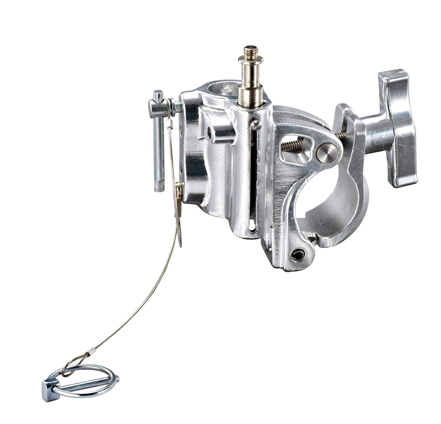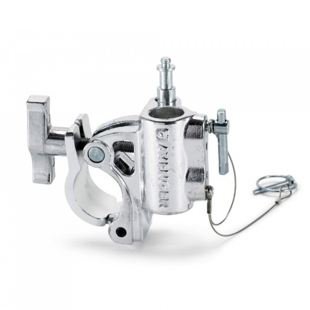 Svorka Avenger C345K-1 v striebornej farbe je vyrobená z gravitačne liateho hliníka, má zabudovanú objímku s priemerom 28 mm/1 1/8 palca, čap s priemerom 16 mm/5/8 palca s horným závitom 1/4'' a objímku s priemerom 16 mm/5/8 palca.