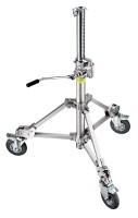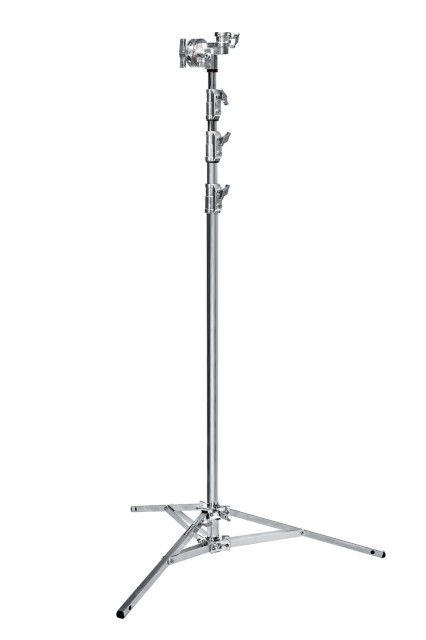 Stojan A3059CS je vybavený integrovanou upínacou hlavou, ktorá bezpečne drží nosné tyče, rúrky alebo rámy, vďaka čomu je ideálny pre nadhlavné inštalácie a prácu vo výškach. Statív je vybavený jednou nastaviteľnou vyrovnávacou nohou, ktorá zaisťuje stabilné umiestnenie aj na nerovných povrchoch. Jeho maximálna výška 5,78 m poskytuje dostatočný dosah pre použitie v štúdiu aj v exteriéri, zatiaľ čo priemer základne 129 cm zaisťuje stabilitu pri dlhodobom používaní. Statív je kompatibilný s odporúčanými kolieskami (A9000N) pre ľahkú mobilitu a dá sa zložiť na kompaktných 167 cm pre prepravu alebo skladovanie.