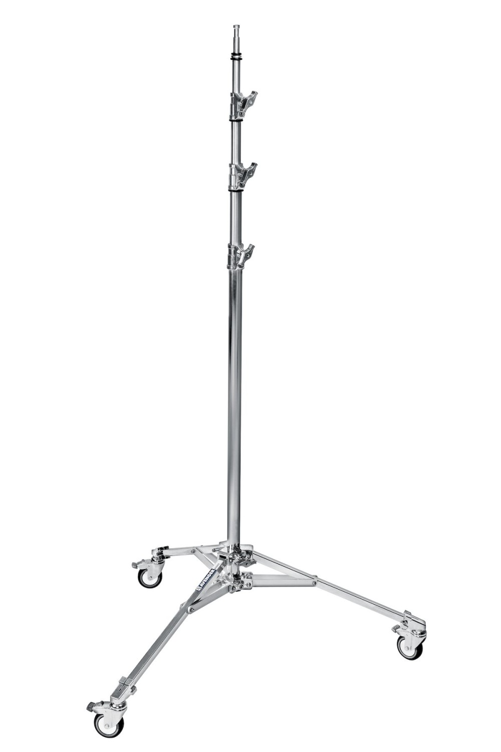 Avenger A5043 Roller Stand 43 s nízkou základňou je robustný trojnohý statív z pochrómovanej ocele a hliníka s brzdnými kolieskami, tromi výsuvnými sekciami a 5/8" Baby studom, ktorý unesie až 12 kg a dosahuje maximálnu výšku 430 cm.