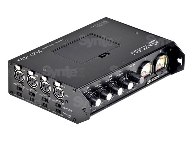 Prenosný audiomix Azden FMX-42a obsahuje štyri XRL linkové/mikrofónne vstupy s individuánym nastavením úrovne a panorámy, zapínateľné 48V phantom napájanie zvlášť na každý kanál, profesionálne VU metre pre presné nastavenie úrovne, nastavenie master úrovne, generátor 1k tónu, dva symetrické XLR výstupy (prepínateľný medzi linkou a mikrofónnym výstupom), stereo mini-jack výstup, 10-pin konektor pre spatné audio z kamery a výstup na slúchadlá s nastavením úrovne.