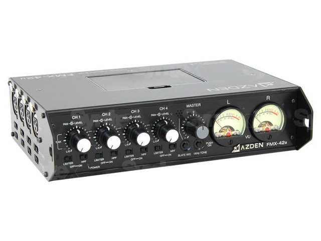 Prenosný mixážny pult Azden FMX-42u je vybavený štyrmi vstupmi s konektormi XLR a mikrofónovou/linkovou úrovňou s individuálnym nastavením úrovne/panorámy a 48 V fantómovým napájaním. Zariadenie je tiež vybavené presnými VU meračmi, generátorom testovacích tónov (1 kHz), dvoma vyváženými výstupmi (XLR, linkový alebo mikrofónový), stereo jack výstupom, slúchadlovým výstupom s reguláciou úrovne alebo USB rozhraním s možnosťou nahrávania dvoch kanálov, napr. pomocou telefónov a tabletov. Napájanie šiestimi batériami AA alebo externým 10,5-17 V= napájacím zdrojom (nie je súčasťou balenia; štvorpinový konektor Hirose). Súčasťou balenia je aj kvalitná taška na prenášanie s popruhom.