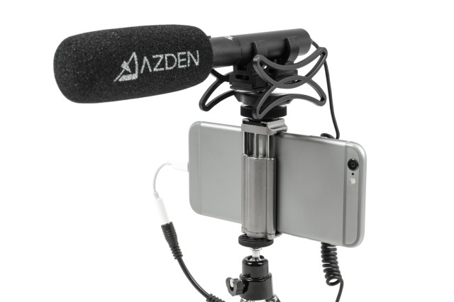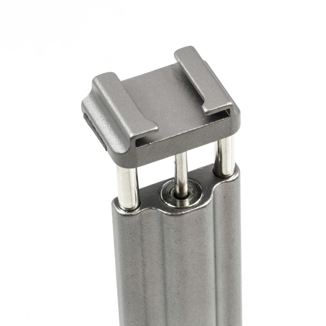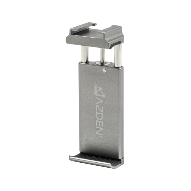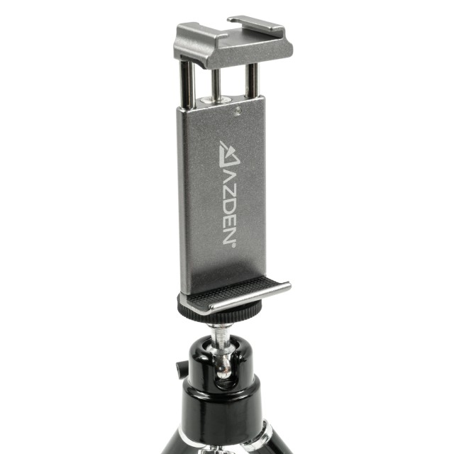 Držiak na smartfónDodávaný držiak využíva pružinovú svorku na pevné uchytenie takmer každého smartfónu. Dokáže sa prispôsobiť šírke telefónu od 2,4 do 3,3 palca, takže je kompatibilný aj s najväčšími smartfónmi (phabletmi) na súčasnom trhu. Na rozdiel od mnohých iných držiakov na telefón je náš držiak vybavený slotom cold-shoe, ktorý vám umožní namontovať mikrofón, bezdrôtový prijímač alebo iné príslušenstvo. Samotný držiak je možné pripevniť na priložený statív alebo akýkoľvek iný stojan či tyč fotoaparátu prostredníctvom otvoru so závitom ¼"-20. Držiak je vyrobený tak, aby vydržal, má celokovovú konštrukciu a je testovaný na kvalitu, ktorá vydrží viac ako 6 000 ťahov.