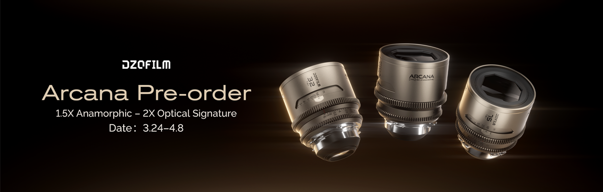 We are excited to introduce the new DZOFilm Arcana 1.5x T2.1 full‑frame anamorphic primes, now open for pre‑order in 32mm, 45mm, 75mm and as a 3‑lens set. Featuring a hybrid 1.5x design with classic 2x‑style elliptical “waterfall” bokeh, front‑cylindrical optics for controlled mumps, and dynamic horizontal flares, Arcana brings a true cinematic widescreen look to compact full‑frame setups.