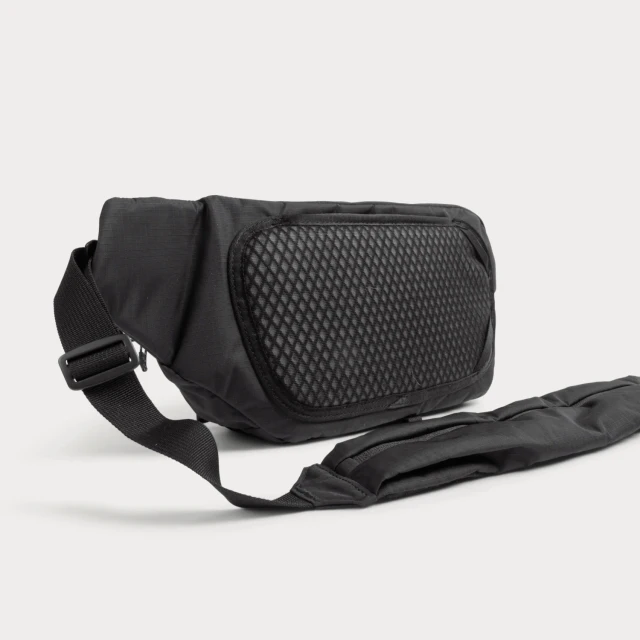 Do popruhu je zabudované vrecko s ľahkou výstelkou a samostatnou sponou, aby ste mali telefón, kľúče, AirPods alebo mobilné objektívy vždy po ruke.