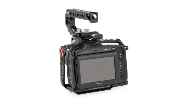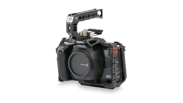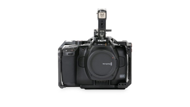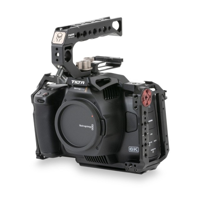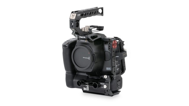 Pri použití polovičnej klietky možno spodnú dosku rozšíriť tak, aby podporovala batériový grip Black Magic Design. Priložený držiak na 15 mm tyče možno nainštalovať na podporu 15 mm tyčí pred telom fotoaparátu pri použití Battery Grip v nastavení Half Cage. Dodávanú hornú rukoväť s rýchloupínačom možno pripevniť k hornej časti klietky pomocou prijímača studenej pätice a skrutky ¼"-20. To poskytuje mimoriadne bezpečné spojenie na pohodlnú manipuláciu a ovládanie systému fotoaparátu. Horná rukoväť je vybavená ďalšími závitmi ¼"-20, prijímačmi studenej pätice a horizontálnym držiakom 15 mm tyče na montáž externých monitorov alebo EVF. Držiak jednotky SSD sa pripája priamo ku klietke pomocou skrutky 1/4″-20 a polohovacieho kolíka.