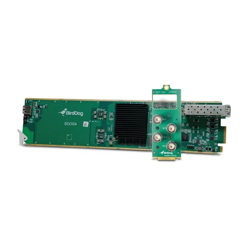 BirdDog OG4 je prvá karta NDI OpenGear na svete. Ponúka štyri nezávisle konfigurovateľné porty 12G-SDI. Súčasťou je plná podpora palubnej dosky a port SFP+ pre pripojenie 10GbE. Je plne kompatibilná s platformou openGear štvrtej generácie, oGx, modulárnym systémom 2RU rackového rámu s otvorenou architektúrou.