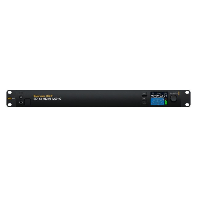 Blackmagic 2110 IP SDI na HDMI 12G-10 konvertuje video 12G-SDI alebo SMPTE-2110 na HDMI v stojanovom prevedení. Ponúka najvyššiu kvalitu konverzie spomedzi všetkých štandardov videa SD, HD a Ultra HD vrátane podpory 3D LUT na presnú kalibráciu displejov HDMI. Dostupnosť sa očakáva v júni 2025.