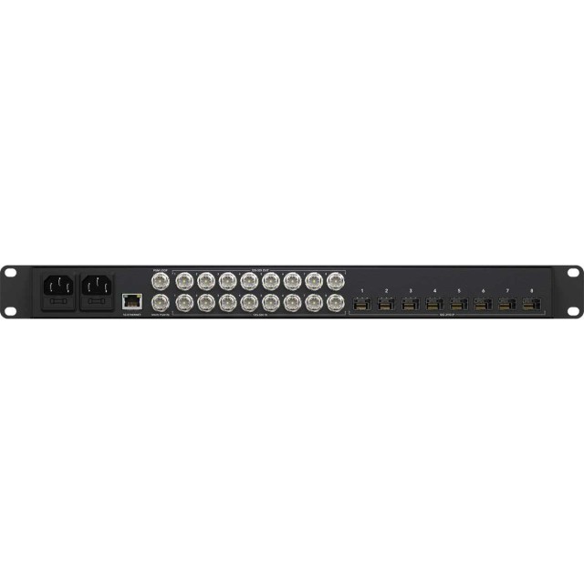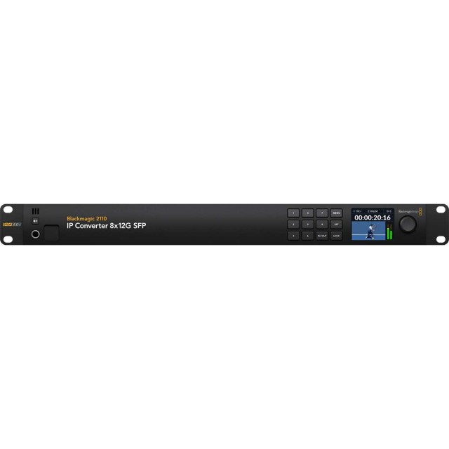 Blackmagic Design 2110 IP Converter 8x12G SFP umožňuje bezproblémovú konverziu 3 samostatných zariadení 3G-SDI na systémy IP videa SMPTE 2110. Tento konvertor vybavený 10G ethernetovým pripojením podporuje 3 vstupné video kanály a 3 výstupné kanály súčasne. Každý kanál má nezávislé vstupy a výstupy SDI, čo umožňuje pripojenie až 6 rôznych zariadení SDI. Vďaka slučkovým výstupom pre každý vstup 3G-SDI sa ľahko integruje do existujúcich zostáv SDI. Je vybavený referenčným výstupom časovaným podľa hodín PTP 2110 a obsahuje predný panel s farebným LCD displejom na monitorovanie, ponuky a diagnostiku.