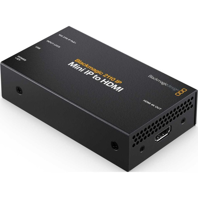 Spoločnosť Blackmagic Design ponúka širokú škálu produktov IP videa SMPTE-2110 vrátane konvertorov, video monitorov, audio monitorov a dokonca aj kamier. Navyše podporujú rozlíšenie Ultra HD pomocou lacného 10G Ethernetu. Väčšina modelov konvertorov je obojsmerná, takže sa fantasticky hodia na použitie na kamerách, keď zákazníci potrebujú dodatočný návrat programu. Modely na montáž do stojana majú elegantný dizajn s farebným displejom LCD na monitorovanie, menu a diagnostiku. Všetky modely sú v súlade so štandardom SMPTE ST-2110 pre IP video vrátane hodín PTP a dokonca aj s podporou NMOS, takže zákazníci môžu vytvárať pripojenia pomocou panela video smerovača.