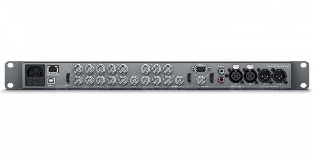 2 6G-SDI výstupy, 1 HDMI 4K výstup a 1 down-konvertovaný HD-SDI výstup.