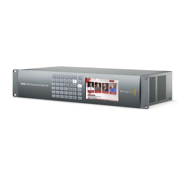 Produkt ATEM 2 M/E Production Studio 4K je umístěn v elegantním, odolném šasi s hliníkovým čelním panelem výšku 2U. Čelní panel hostí tlačítka dovolující přepínat mezi šesti nezávislými pomocnými výstupy, signál na nich přítomný pak lze monitorovat na 5“ LCD displeji umístěném tamtéž. Přepínání pomocných výstupů je určeno k nastavení zařízení i k přepínání během živého vysílání. Vysoká odolnost hardwaru je doplněna dedikovaným, stabilním operačním systémem. Na rozdíl od levných režií využívá ATEM 2 M/E Production Studio 4K průmyslový operační systém pro maximální spolehlivost provozu.