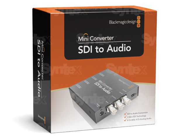 Blackmagic Design Mini Converter - SDI to Audio je univerzálny externý prevodník schopný "vytiahnúť" 4 kanály analógového a až 8 kanálov digitálneho AES/EBU zvuku. Prevodník je ideálny ak chcete mať samostatný monitoring zvuku z SDI signálov.