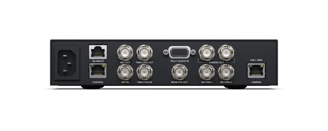 Voliteľný konvertor rozhrania Blackmagic Studio Camera 4K 10G Ethernet umožňuje prenos videa, signalizačných príkazov, komunikačného kanála a napájania kamery cez jediný kábel, podobne ako hybridné rozhranie SMPTE Fiber, ale za výrazne nižšiu cenu kábla Cat 6A Ethernet. Konvertor Blackmagic Studio Converter vykonáva všetky konverzie v režijnom režime a dopĺňa rozhranie Ethernet o napájanie PoE do kamery. Ponúka 2x 12G-SDI I/O, 3G-SDI monitorovací výstup, 1x RJ-45 10G Ethernet s podporou PoE, I/O pre časový kód a referenčný signál (Tri-Sync alebo Black Burst), spätný hovor (SDI kanály 13-16 a RJ-45), 2,2" LCD displej, výstup na slúchadlá a integrovaný reproduktor atď. V predaji od 10/2021.