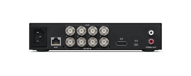 Na prednej maske sa nachádzajú ovládacie prvky a farebný displej, ktorý zobrazuje signál prítomný na vstupe videa, merače zvuku a indikátor formátu videa. Zadný panel ponúka rozhranie Quad Link 12G-SDI kompatibilné so štandardmi HD, Ultra HD a 8K. K dispozícii sú aj dva konektory DisplayPort: jeden štandardný a jeden v štýle USB-C pre nové monitory, ako napríklad Pro Display XDR. Integrovaná funkcia zmeny rozlíšenia videa zabezpečuje správny obrazový signál pre monitor pripojený k rozhraniu DisplayPort.