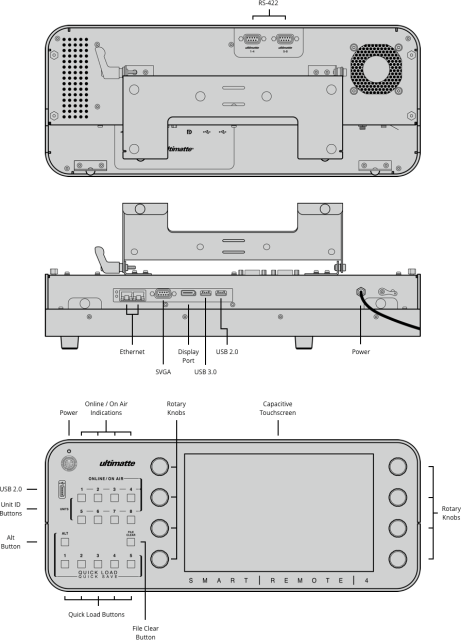 Ultimatte Smart Remote 4 je diaľkový ovládač s dotykovou obrazovkou, ktorý sa pripája prostredníctvom siete Ethernet na ovládanie zariadenia Ultimatte 12. Môže sa používať na pracovnom stole alebo v racku s inými zariadeniami. Až osem jednotiek Ultimatte 12 možno reťazovo zapojiť a pripojiť k rovnakému diaľkovému ovládaču Smart Remote, takže sa nemusíte starať o pridávanie video routeru alebo rozbočovača! Smart Remote 4 je vybavený fyzickými tlačidlami, takže môžete prepínať a ovládať všetky pripojené zariadenia Ultimatte 12. K dispozícii sú aj tlačidlá na rýchle načítanie a ukladanie predvolieb spolu s dotykovým displejom, ktorý vám poskytuje úplnú kontrolu nad každým parametrom. Pre zariadenie Ultimatte 12 je jednoduché navrhnúť vlastné riešenia ovládania, pretože používa jednoduchý otvorený textový protokol. Do zariadenia Ultimatte 12 môžete dokonca vstúpiť cez sieť Telnet, takže môžete vyvíjať a testovať vlastné riešenia ovládania.