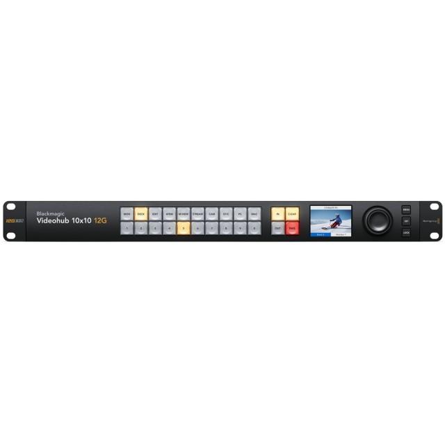 Three new models of Blackmagic Videohub 12G zero latency video routers let customers connect and route any combination of SD, HD and Ultra HD on the same router at the same time. Blackmagic Videohub 12G models feature a front panel with shortcut buttons, an LCD which can display labels or live video, and a machined metal spin knob for browsing video sources.