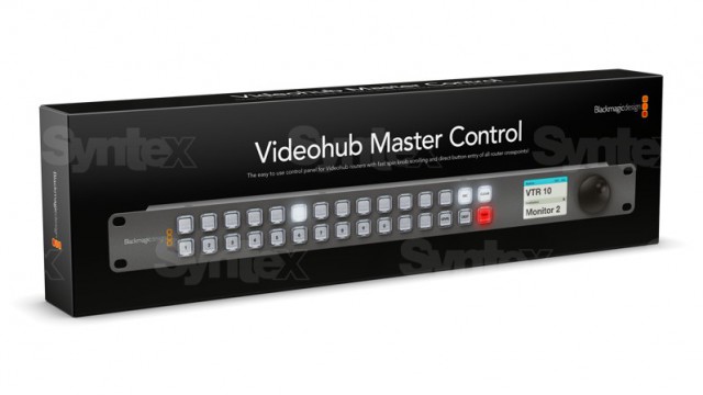 Sofistikovaný ovládací panel Videohub Master Control pro routery řady Videohub nabízí otočný kontrolér a barevný LCD displej pro volbu respektive zobrazení vstupů a výstupů. Volbu spojení lze provést také prostřednictvím programovatelných tlačítek. Napájení je realizováno externím zdrojem stejnosměrného napětí nebo prostřednictvím rozhraní Ethernet.