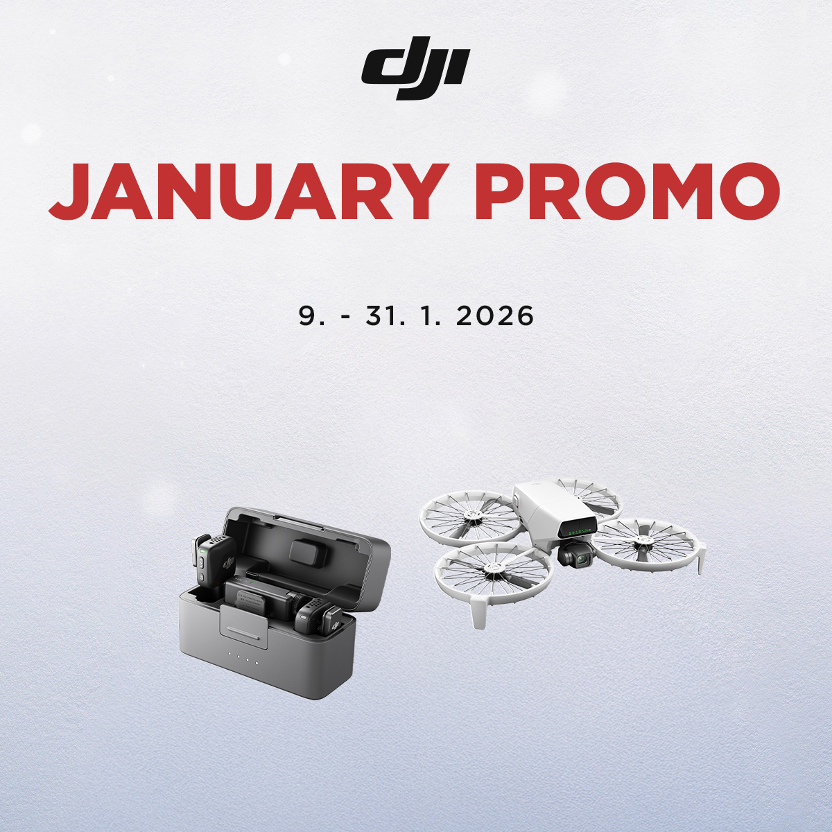 Od 9. do 31. januára 2026mámepreváspripravenézľavy na štyri skupiny produktovDJI. Vďaka tejto akcii môžete zakúpiť nielen špičkovédrony amobilnéstabilizátory, ale ajakčné kamery a mikrofóny DJI sozľavami až do 36 %!