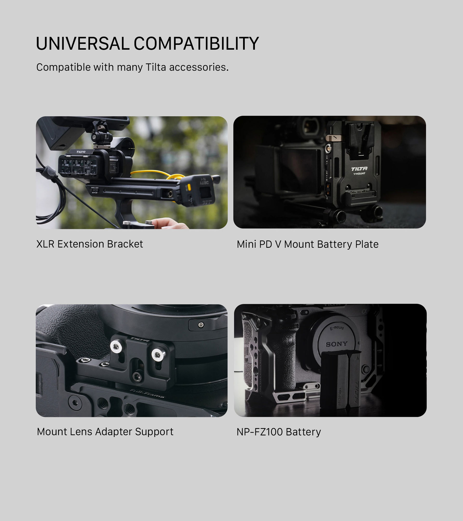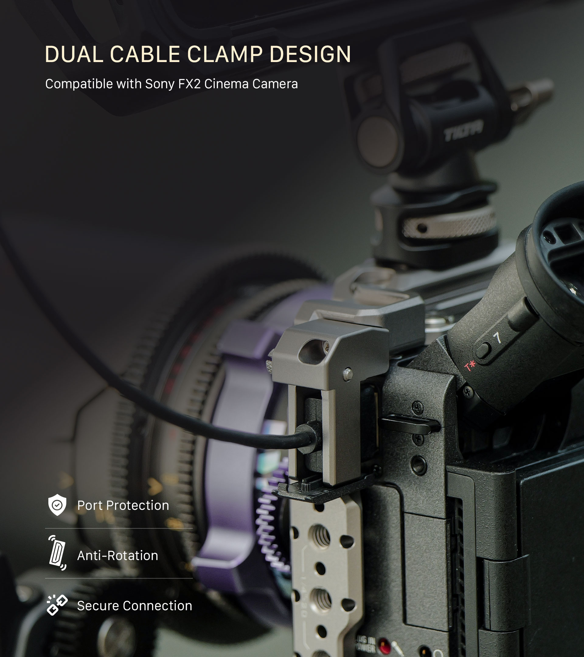 Klietka obsahuje dve káblové svorky, ktoré poskytujú zvýšenú bezpečnosť pre káble HDMI a USB-C s pridanou výhodou bez použitia náradia v podobe krídlových skrutiek. Perfektné prispôsobenie tejto klietky zachováva prístup ku všetkým portom a funkciám, vrátane EVF fotoaparátu, zatiaľ čo jej modulárna konštrukcia zaisťuje, že podporuje rad príslušenstva od prvotného výrobcu, ako je horná rukoväť Sony XLR.