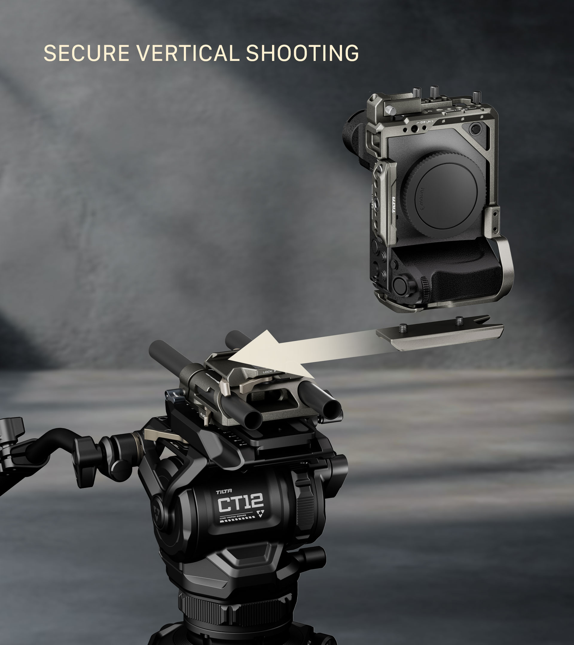 Vzdialenosť od stredu tyčí k držiaku Arca sa pohybuje od 18 mm do 38 mm a je kompatibilná so štandardnými doskami Arca od DJI. Spodná časť základnej dosky je kompatibilná so štandardnými rybinovými spojmi Tilta a je vybavená aj závitmi 1/4″-20 na montáž na statívy a iné podporné systémy.