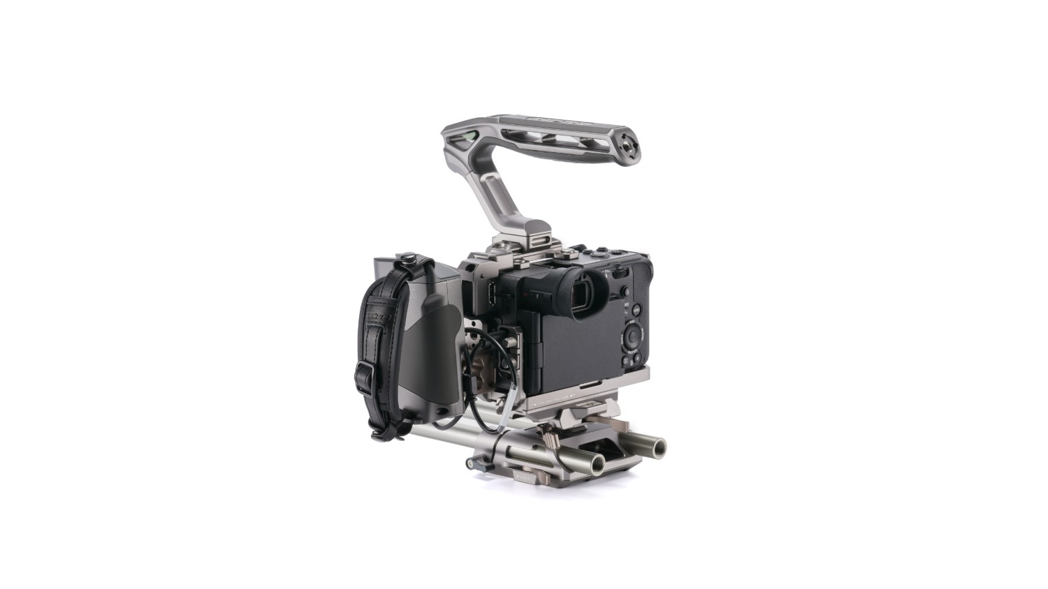 Súčasťou balenia je aj pokročilá rukoväť, ktorá sa pripája k rámu prostredníctvom NATO Rail a napája príslušenstvo, ako aj podporuje ovládanie spustenia a zastavenia prostredníctvom priloženého kábla. Nastaviteľná rotácia a dodatočný remienok na ruku poskytujú výnimočný komfort a flexibilitu pri ovládaní Sony FX2.