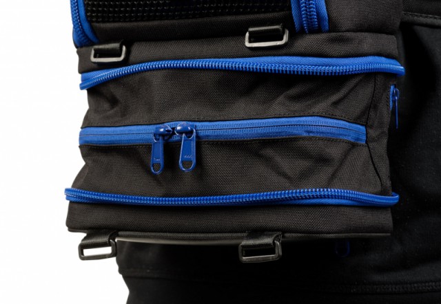 Taška je vyrobená z tkaniny Cordura® odolnej voči oderu v kombinácii so silnou sieťovinou, ktorá umožňuje únik tepla, ktoré zariadenie vytvára. Otvory s háčikmi a slučkami umožňujú viesť káble z jedného konca tašky na druhý.
