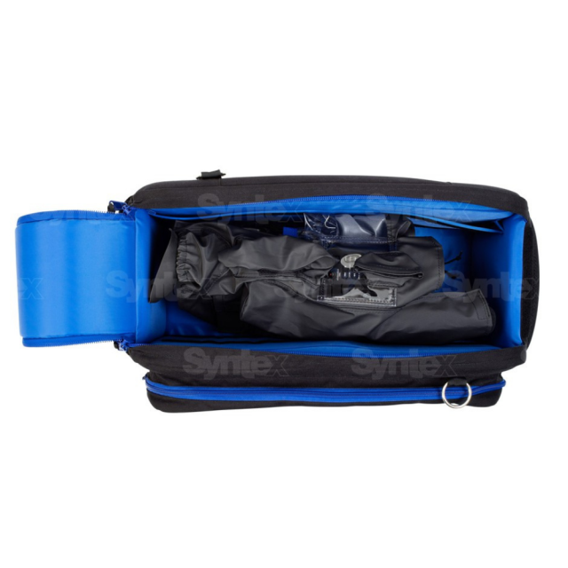 Táto taška je vyrobená z odolnej nepremokavej tkaniny a má dvojité (modré) zipsy YKK®, ktoré sa otvárajú jedným jednoduchým zatiahnutím
