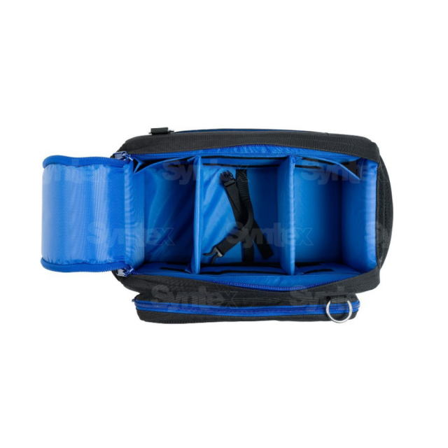 Vnútorný priestor s mäkkým polstrovaním obsahuje odnímateľné priehradky, ktoré uľahčujú usporiadanie hlavného priestoru do sekcií podľa vašich požiadaviek. Tašku môžete prenášať pomocou priloženého pohodlného polstrovaného ramenného popruhu, mäkkých rukovätí alebo ju bezpečne prepravovať na vozíku. (Otvor na zips na zadnej strane tašky umožňuje jej bezpečné pripevnenie na vozík).