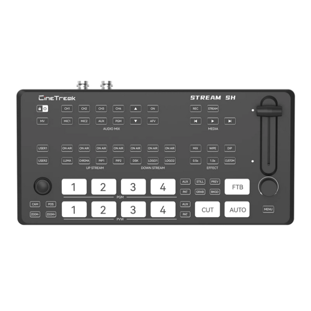 Zariadenie CineTreak Stream SH je navrhnuté pre dynamické a náročné prostredia živej produkcie a ponúka bezproblémové hybridné prepínanie s 2 vstupmi HDMI (až do 4K) a 2 vstupmi SDI a výstupmi PGM a PVW. Podporuje celkovo 6 zdrojov videa vrátane obsahu AUX, pozadia a karty SD, takže je ideálny na podujatia s viacerými kamerami, živé prenosy a hybridné štúdiové zostavy.
