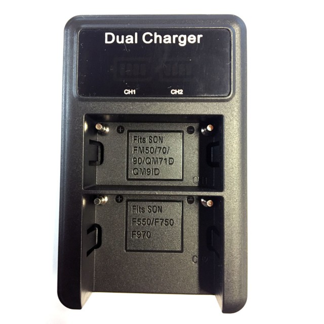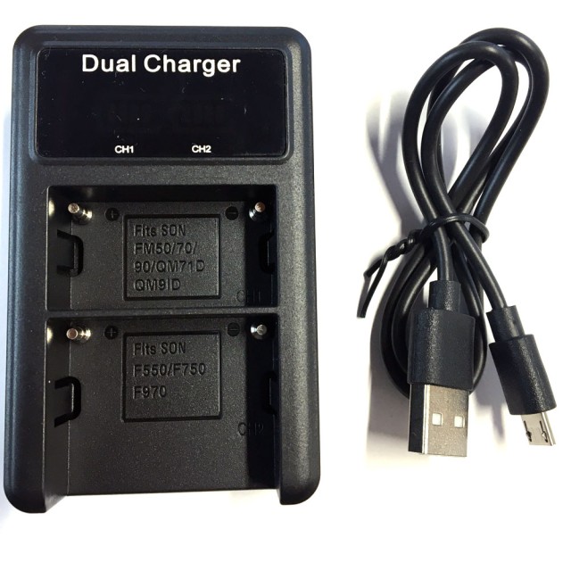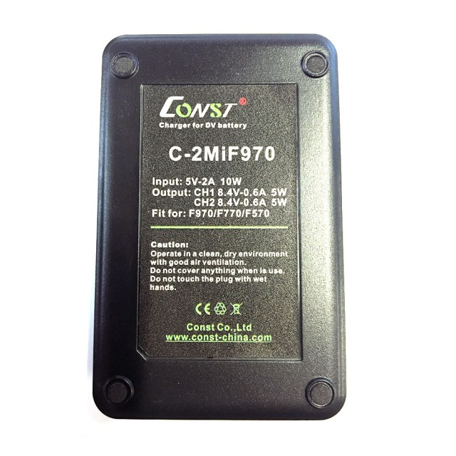 2-kanálová "cestovná" nabíjačka pre DV batérie CONST F990/F970/F770/F570/, USB napájanie.
