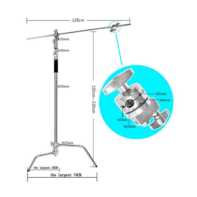 Stojan je vybavený patentovaným zaisťovacím mechanizmom, ktorý umožňuje vyklopenie nôh a zaistenie na mieste pre ľahké nastavenie a ploché zloženie pre uloženie. Nohy perfektne tvarované pre zaistenie sandbagov. Podstavec umožňuje nastavenie jednotlivých nôh v ľubovoľnom uhle a je možné ho umiestniť na miesta, ktoré nie sú možné pomocou štandardne navrhnutých stojanov. 40-palcová lišta má trvalo pripevnenú 2,5-palcovú uchopovaciu hlavu s veľkou ergonomickou rukoväťou tvaru T. Grip Arm sa často používa ako krátke rameno. Impact Grip Head pripevňuje príslušenstvo a svetlá, modifikátory svetla, mriežky, vlajky, rezačky a ďalšie príslušenstvo k osvetleniu na stojany C alebo na rámy butterfly.