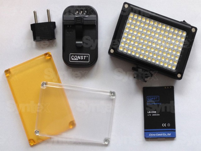 EK90 je cenovo dostupné kamerové svetlo - kit. Kit obsahuje 5600K LED svetlo, 3.7V Li-ion batéria, nabíjačka lítiovej batérie, mäkký a jantárový filter. LED svetlo EK90 má možnosť napájania aj zo štandardných tužkových AA batérií.