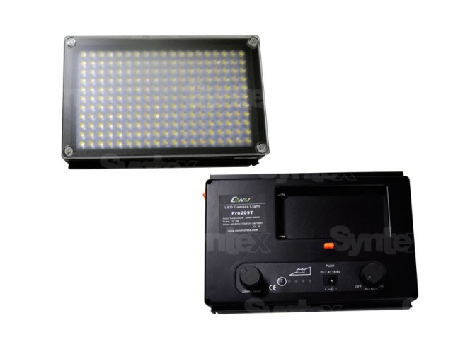 CONST Pro 209T je regulovateľné univerzálne bi-color LED svetlo (obsahuje až 209 LED diód) určené pre väčšinu kamier a DSLR fotoaparátov. Svetlo má plynule nastaviteľnú farebnú teplotu (od 5600K do 3200K) a možnosť napájania zo SONY kompatibilných batérií NP-Fxxx.