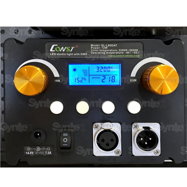 SL-L80DAT 72W, Bi color, LED svetlo s nastaviteľnou intenzitou a teplotou farieb pomocou diaľkového ovládania a dodávaného diaľkového ovládania, s možnosťou montáže batérie V-Mount.Svetlo je vybavené DMX
