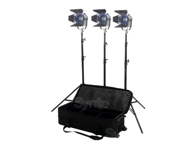 CONST SL-T300/500 (300W vlfrámový reflektor s Fresnel šošovkou). Set obsahuje 3x svetlá SL-T300/500, 3x stojan, 3x žiarovka a ochranný obal.