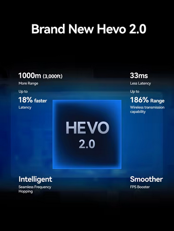 Cosmo C2 funguje na technológii HEVO 2.0, ktorá zabezpečuje plynulý prenos s nízkou latenciou (≥ 33 ms) vďaka automatickej detekcii a prepnutiu na najlepšiu frekvenciu, aby sa zabránilo rušeniu. Systém dokáže prenášať videosignál až do vzdialenosti 1000 metrov (3280 stôp) na otvorenom priestranstve, čo z neho robí skvelé riešenie pre živé podujatia, športové prenosy a rozsiahle produkcie.