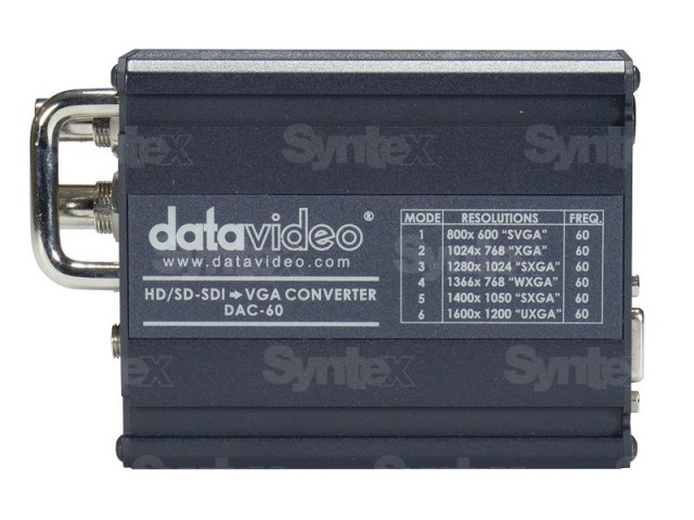 Datavideo DAC-60 je samostatný externý video scaler, umožňujúci jednosmernú konverziu HD/SD-SDI signálu na VGA.