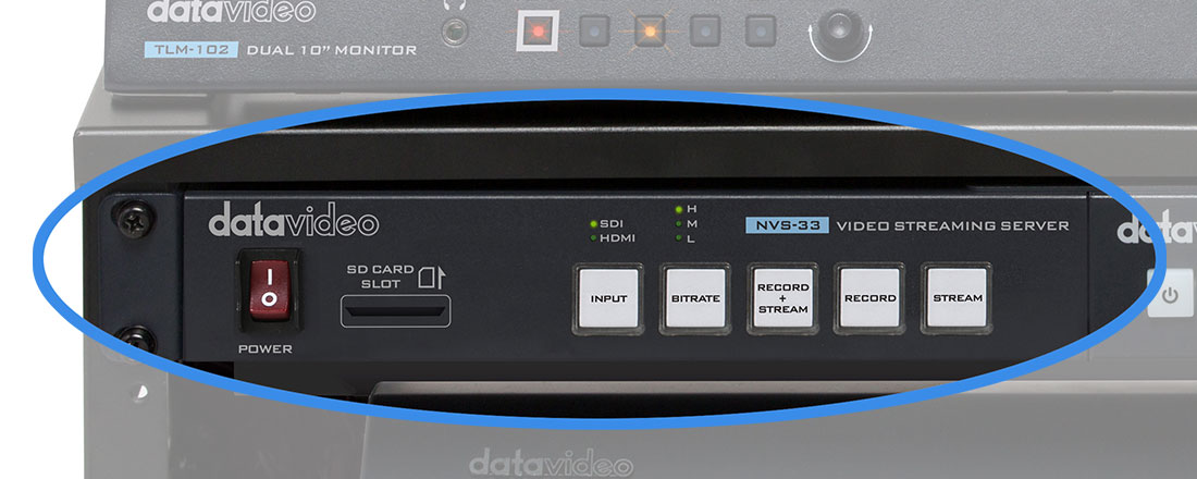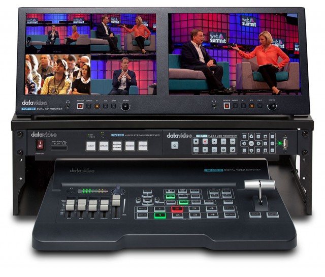 Mobilné štúdio od Datavidea obsahuje 4-vstupovú HDMI video réžiu SE-500HD, streamer NVS-33, video rekordér HDR-1 a duálny 10" monitor TLM-102.