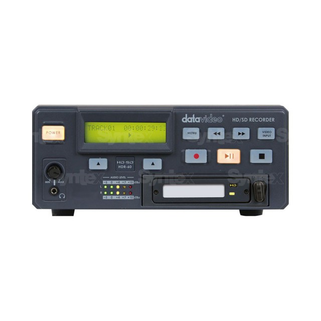 Datavideo HDR-60/HDR-70 jsou studiové videorekordéry se záznamem na výměnné pevné disky do formátu MXF/OP1A a MOV. V HD je záznam realizován až do 80Mbps Long GOP 4:2:0 nebo 4:2:2 a do 100/120Mbps i-frame 4:2:2 s osmi bity. Zařízení zaznamenává SD i HD video z HD/SD-SDI zdrojů (včetně vloženého zvuku) na disky umístěné ve speciálním šuplíku, který lze snadno vyjmout a přípojit k počítačům pomocí USB 2.0. Zařízení je kompatibilní s SSD disky. Po ukončení záznamu stačí vyjmout šuplík a přípojit jej k počítači pomocí USB 2.0 rozhraní, z něhož je disk také napájen. To je velice výhodné např. pro práci s laptopem v terénu! Pro čistě studiový provoz je nabízena varianta HDR-70 do racku.